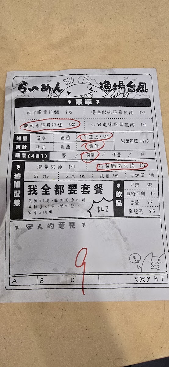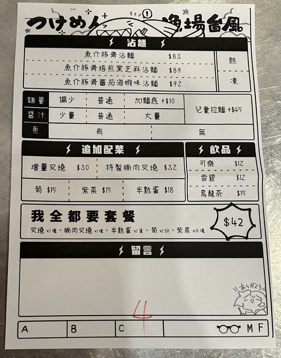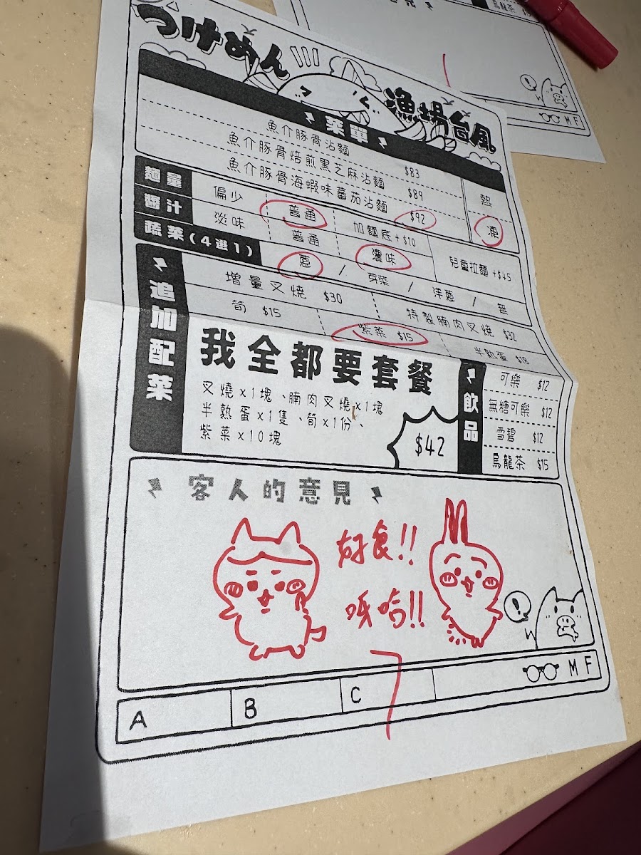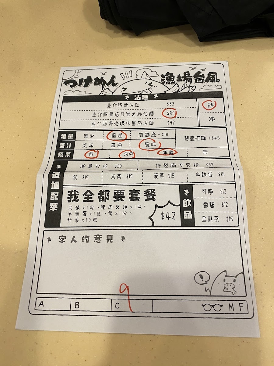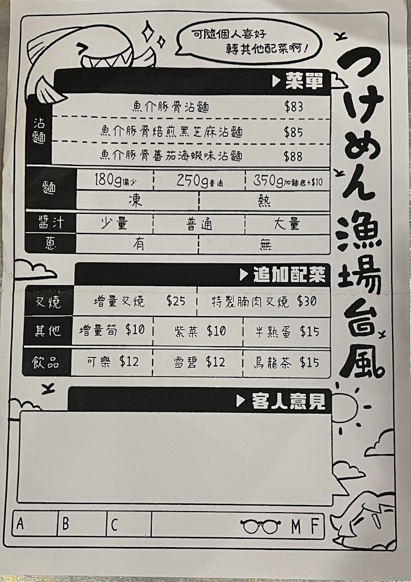 Welcome to Ramen Taifu, a hidden gem located at 39 Fife St, Mong Kok, Hong Kong. Known for its authentic ramen experience, Ramen Taifu offers a menu that celebrates traditional flavors while catering to varied tastes. From the rich Koboshi Broth Ramen priced at HK$95 to the Shrimp and Pork Broth Ramen at HK$98, every dish promises to indulge your palate. Be sure to try the delightful Tsukemen, available from noon to 4:30pm, perfect for those who crave a unique dipping experience.